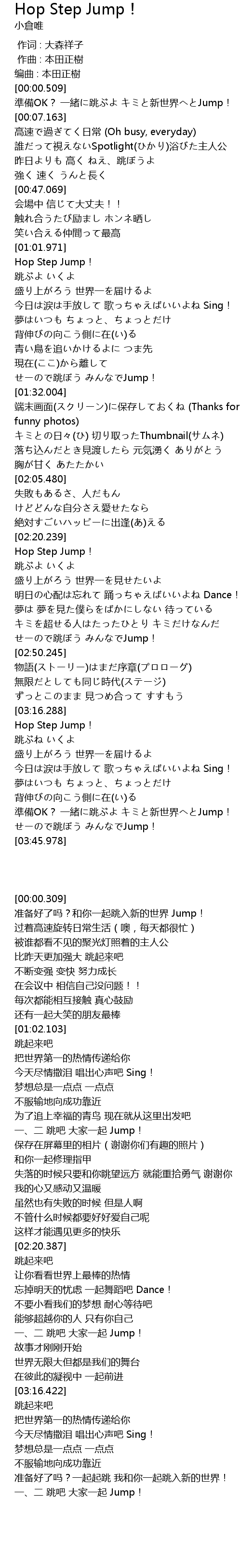 | [00:00.609] | 准备好了吗?和你一起跳入新的世界 Jump! |