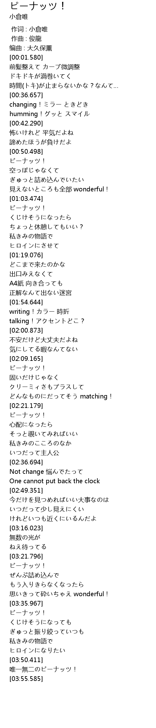 | [03:50.600] | 唯一無二のピーナッツ! |