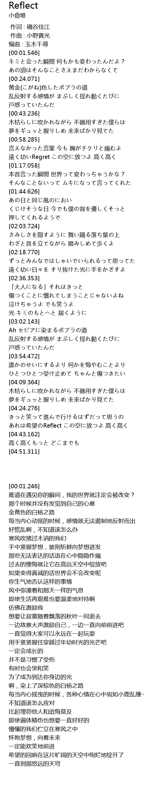 | [04:32.275] | あれは希望のReflect この空に放つよ 高く高く |
