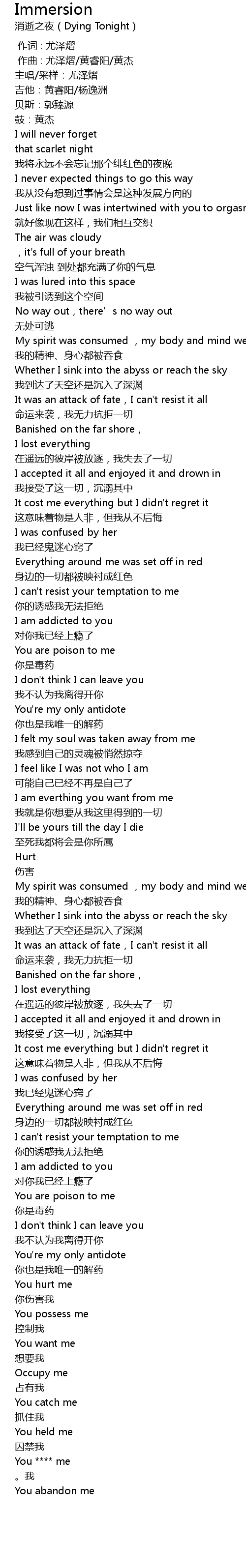| [02:59.164] | My spirit was consumed ,my body and mind were eaten |