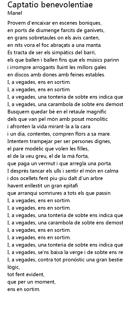 | I, a vegades, se' ns baixa la verge i de sobte ens revela que ens en sortim. | |