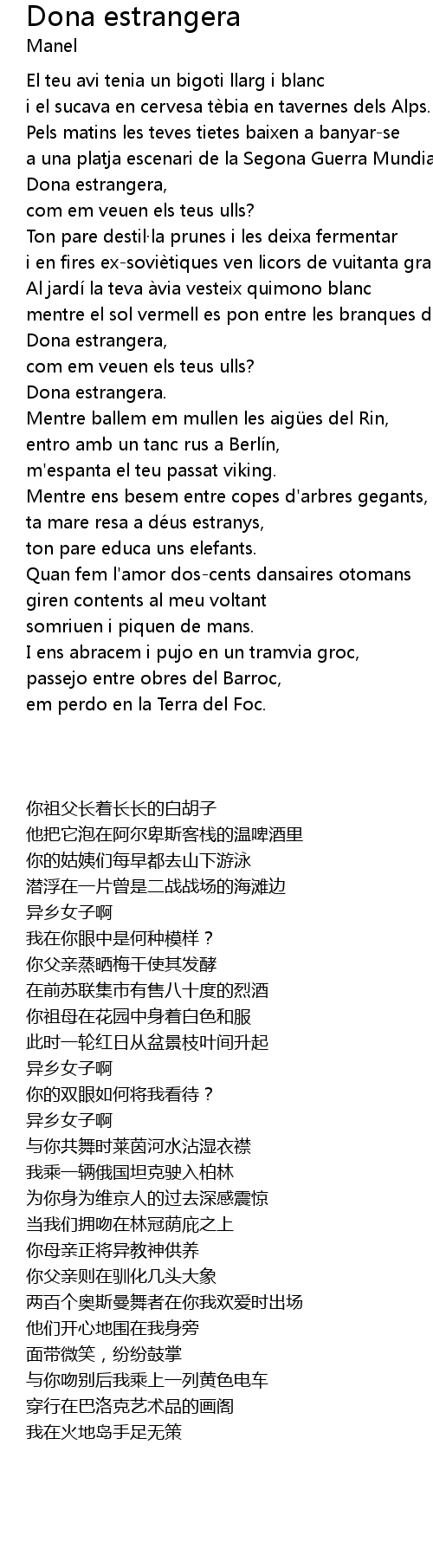 | 歌曲 | Dona estrangera |