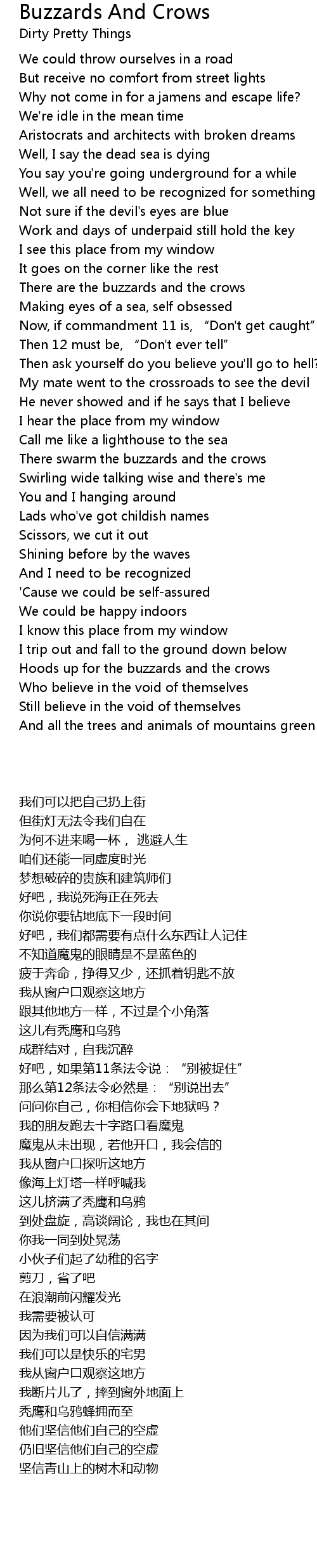 | 歌曲 | Buzzards And Crows |