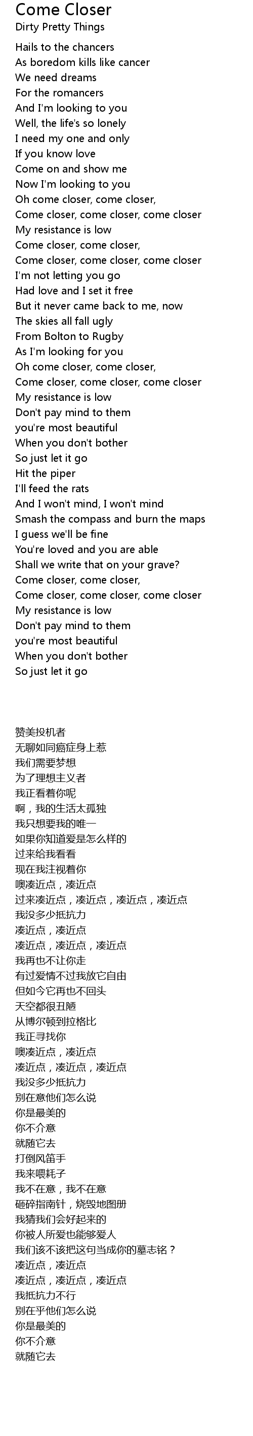 Come Closer 歌词
