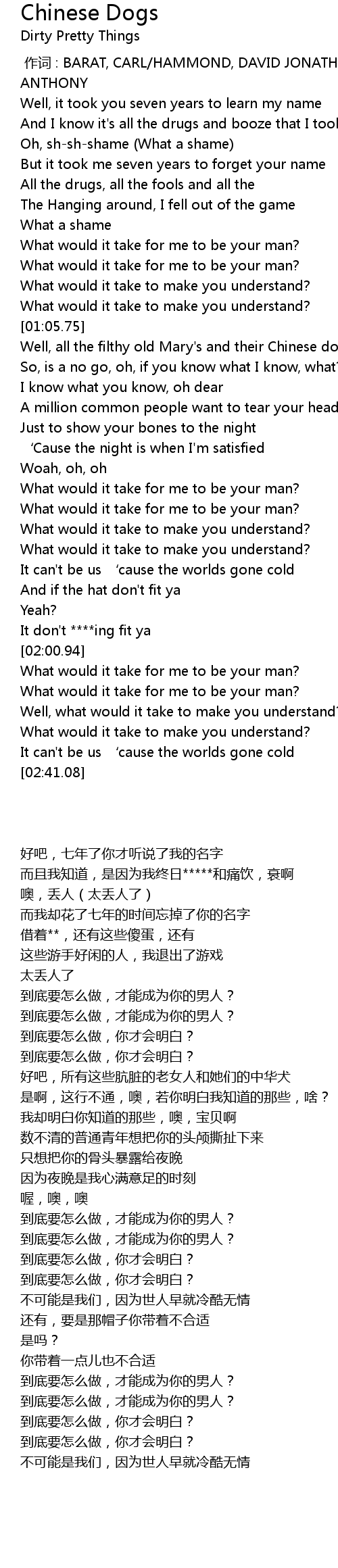 | [01:11.01] | Well, all the filthy old Mary' s and their Chinese dogs |