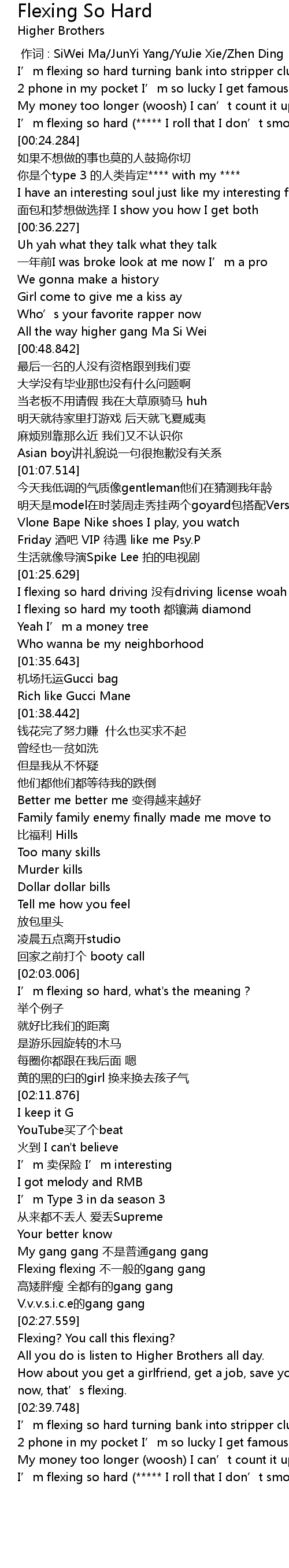 | [02:49.208] | I’m flexing so hard (***** I roll that I don’t smoke that) |