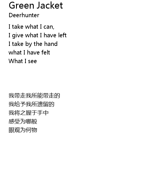 | 歌曲 | Green Jacket |