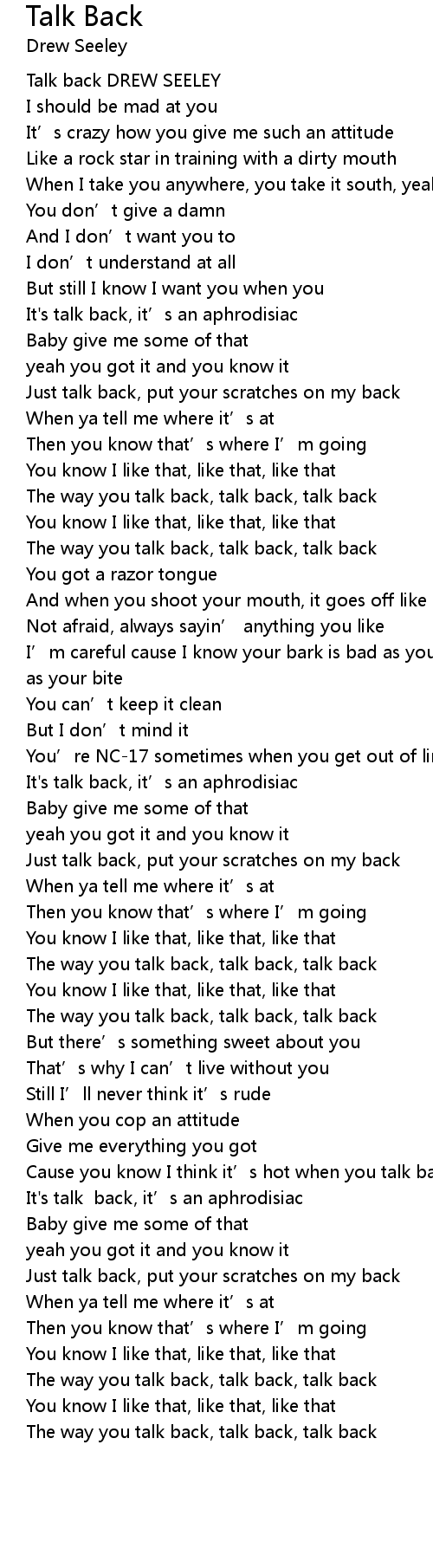 | [01:18.00] | The way you talk back, talk back, talk back |