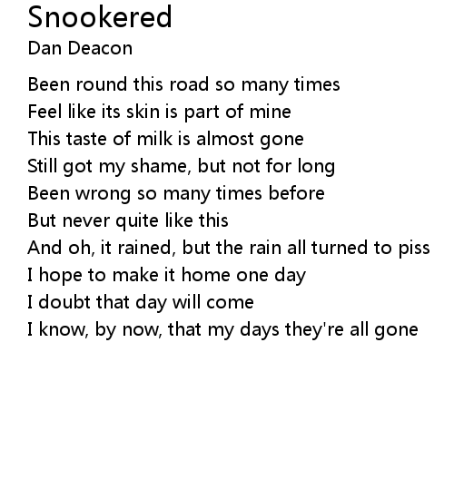| I know, by now, that my days they're all gone |