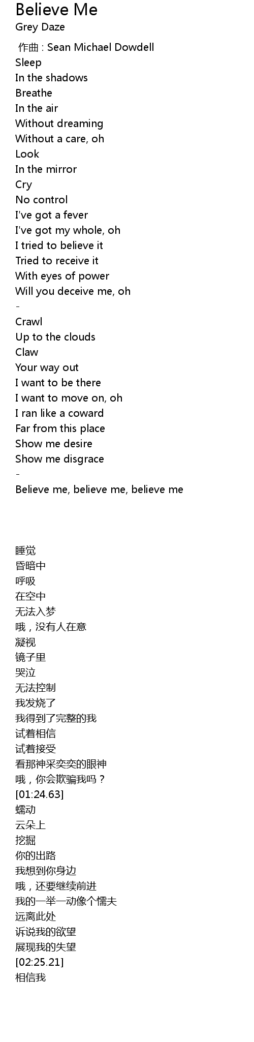 | [02:56.14] | Believe me, believe me, believe me |