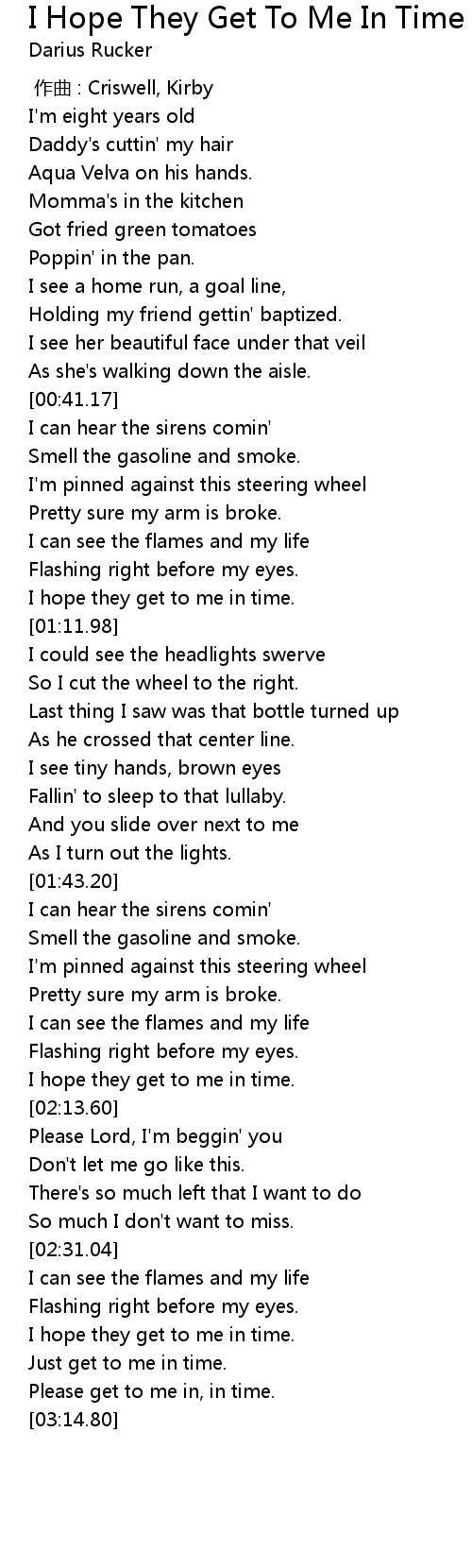 | 歌曲 | I Hope They Get To Me In Time |