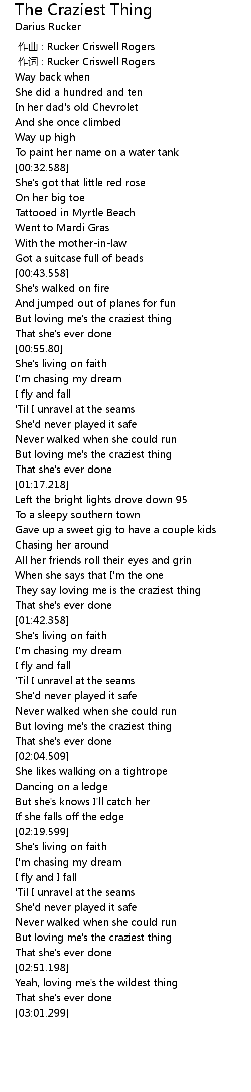 | [00:50.180] | But loving me' s the craziest thing |