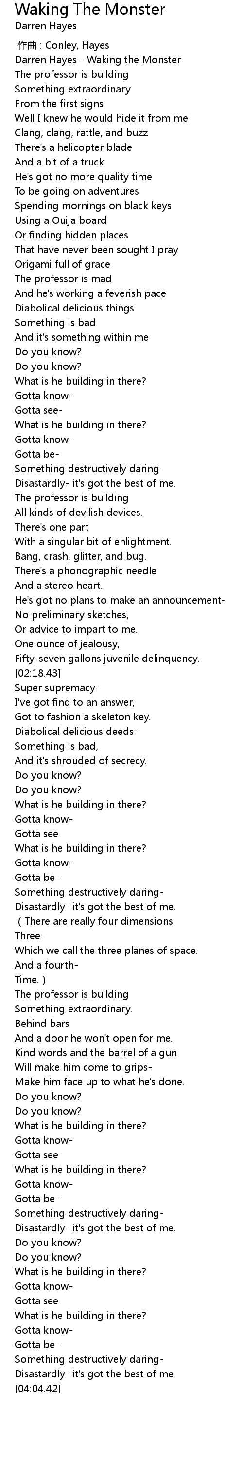 | [00:04.22] | Darren Hayes - Waking the Monster |