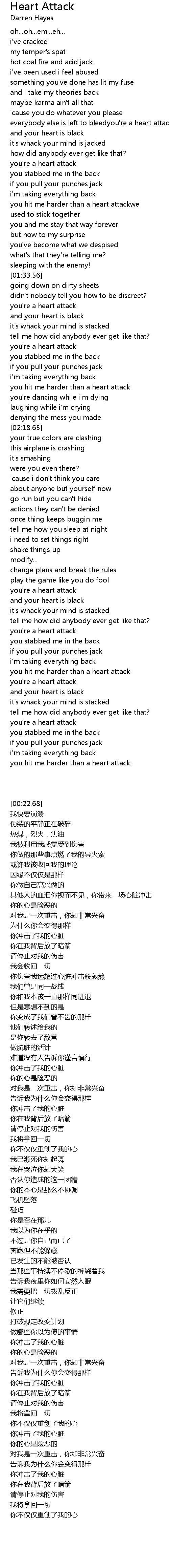| [03:20.74] | you hit me harder than a heart attack |