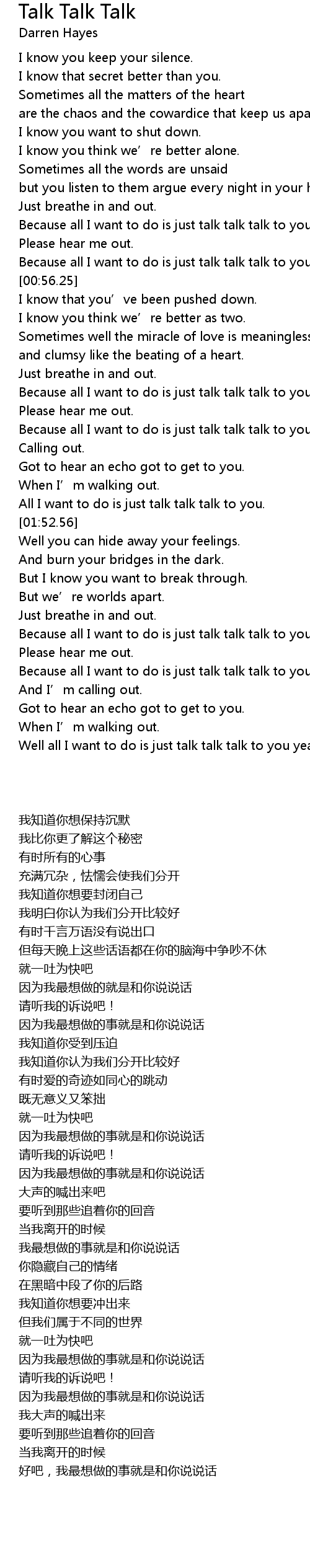 | [00:51.70] | Because all I want to do is just talk talk talk to you. |