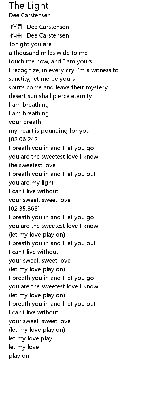 | [00:00.000] | zuo ci : Dee Carstensen |