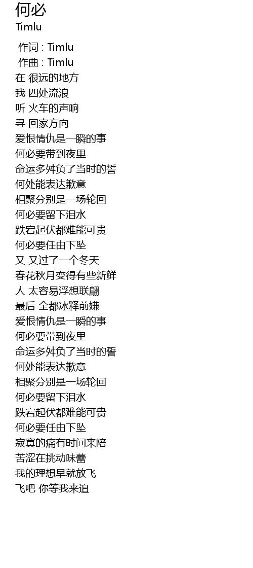 | [04:21.611] | hé bì yào rèn yóu xià zhuì |