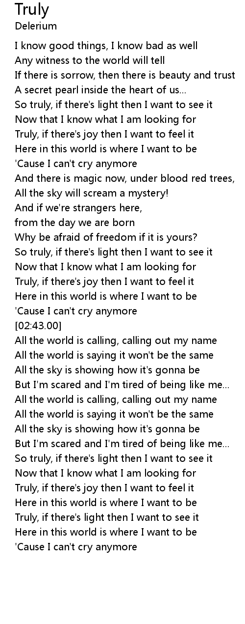 | [02:07.00] | So truly, if there's light then I want to see it |