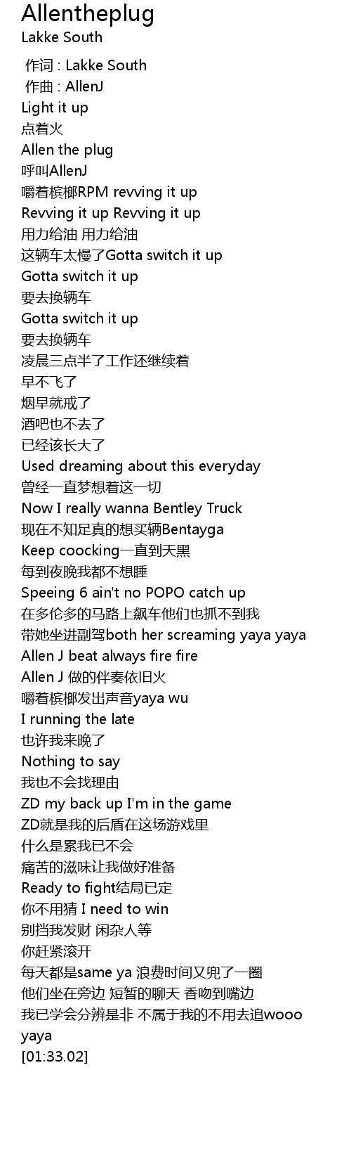 | [00:16.44] | Allen the plug |