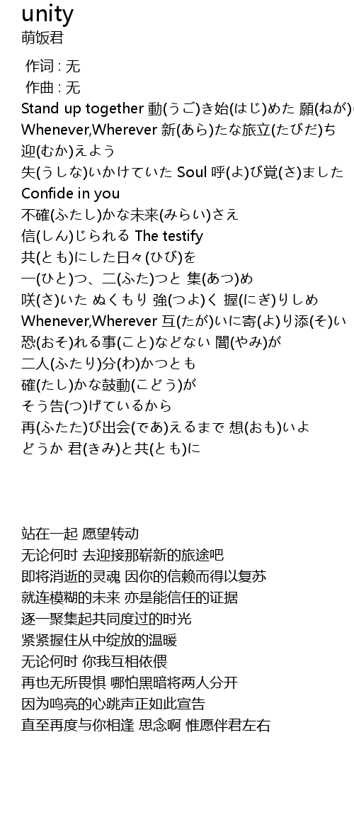 | [00:00.828] | Stand up together 動(うご)き始(はじ)めた 願(ねが)い |