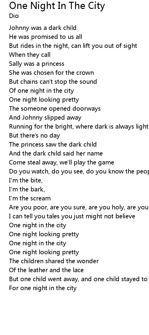 One Night In The City 歌词