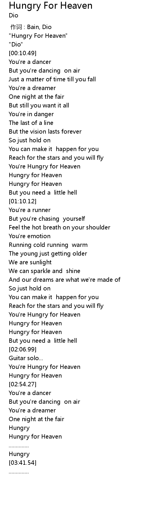 | [00:59.50] | Hungry for Heaven |