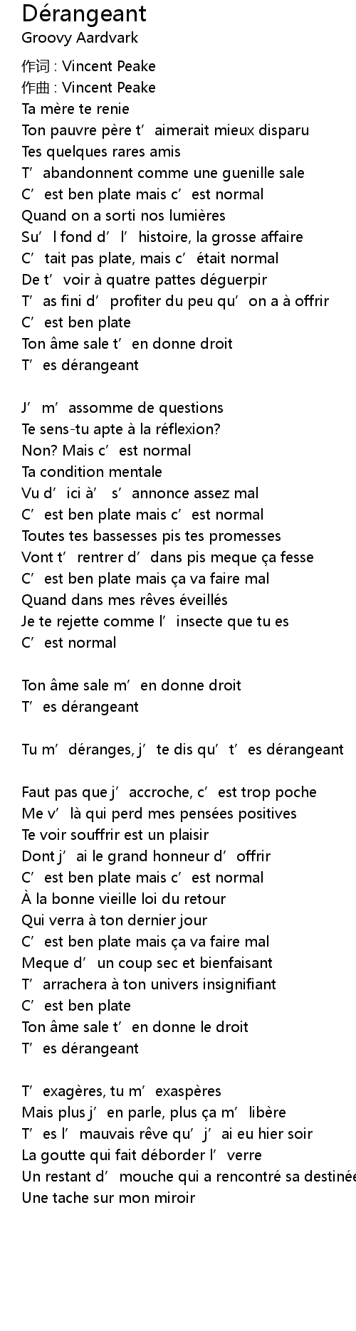| 歌曲 | Dérangeant |