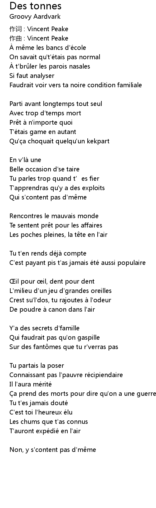 | 歌曲 | Des tonnes |