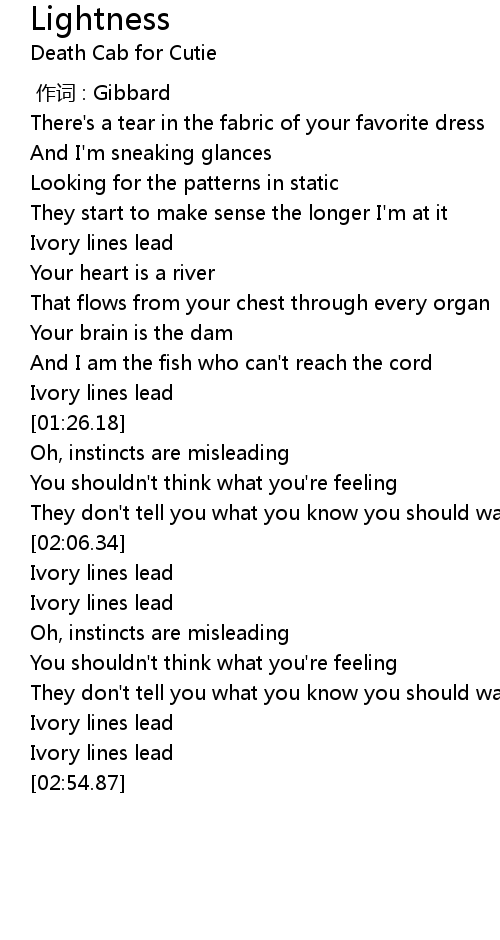 | [00:02.32] | There' s a tear in the fabric of your favorite dress |