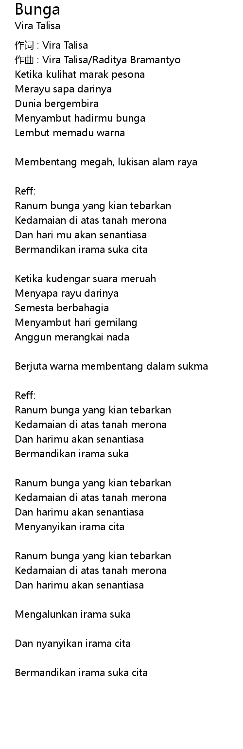 | 作曲 : Vira Talisa/Raditya Bramantyo | |