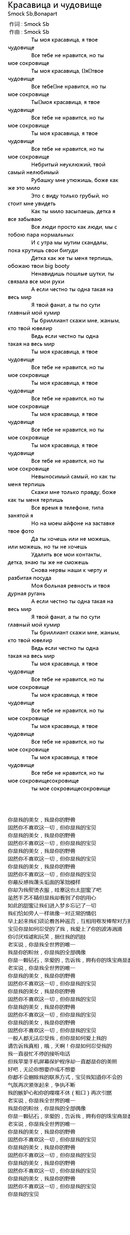 | [00:15.348] | Ты моя красавица, я твое чудовище |