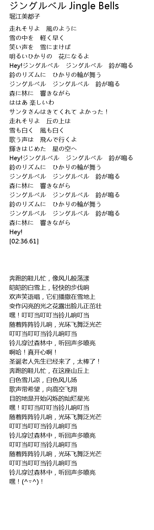 Hey!ジングルベル ジングルベル 鈴が鳴る |