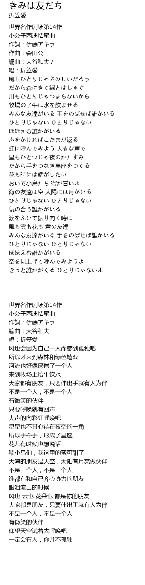 | [02:58.023] | 大家都是朋友,只要伸出手就有人为伴 |