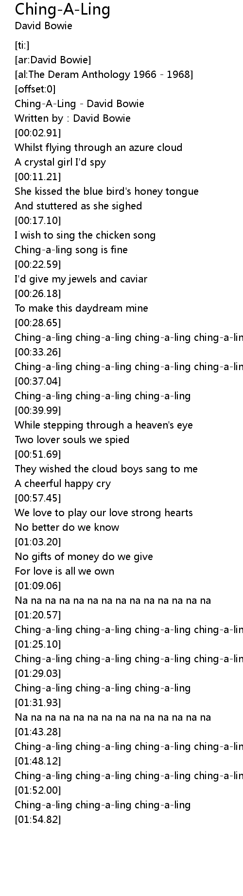 | [00:01.15] | Ching-A-Ling - David Bowie |