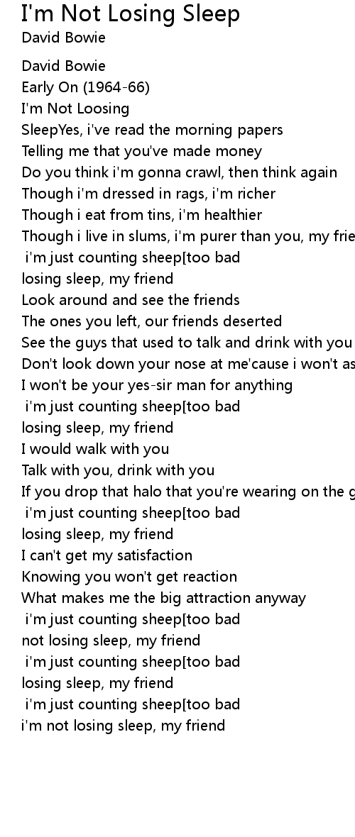 It's too bad, i'm not losing sleep[too bad] i'm just counting sheep[too bad] i'm not losing sleep, my friend |