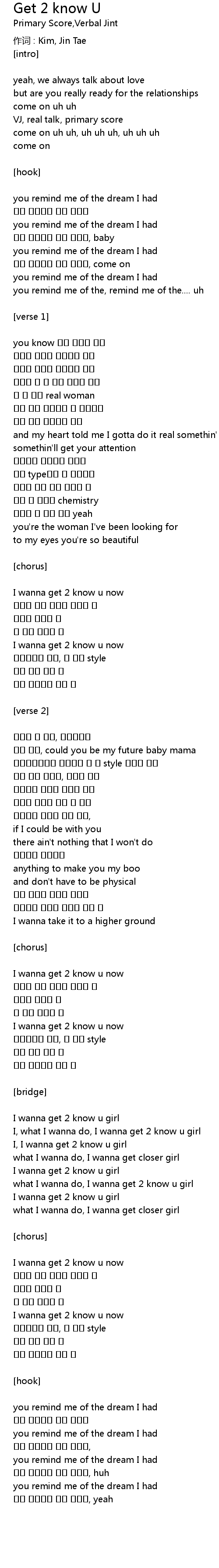 | I, what I wanna do, I wanna get 2 know u girl | |