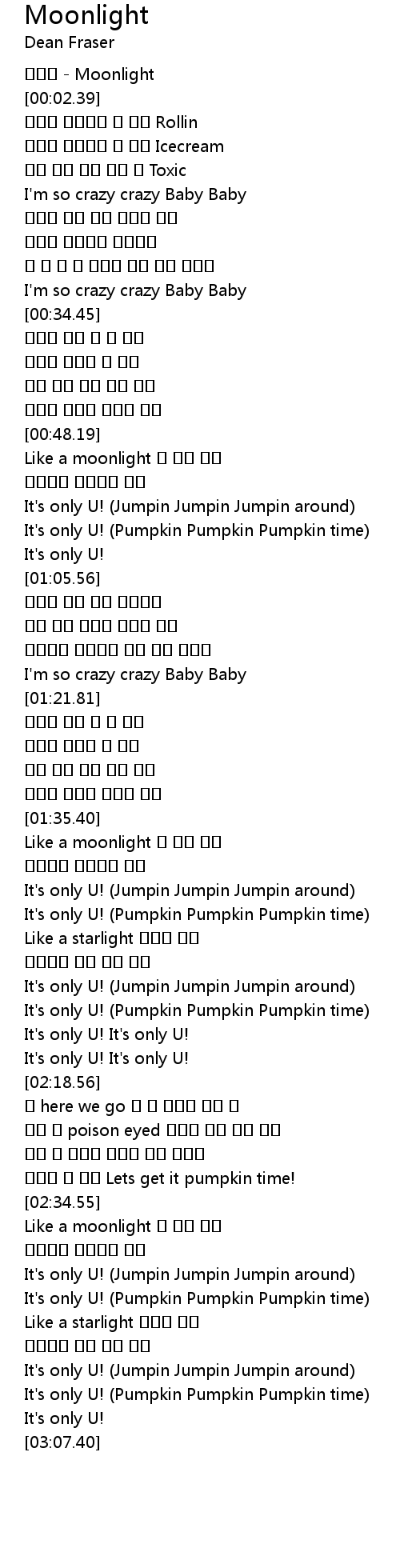 | [02:31.52] | 벗어날 순 없지 Lets get it pumpkin time! |