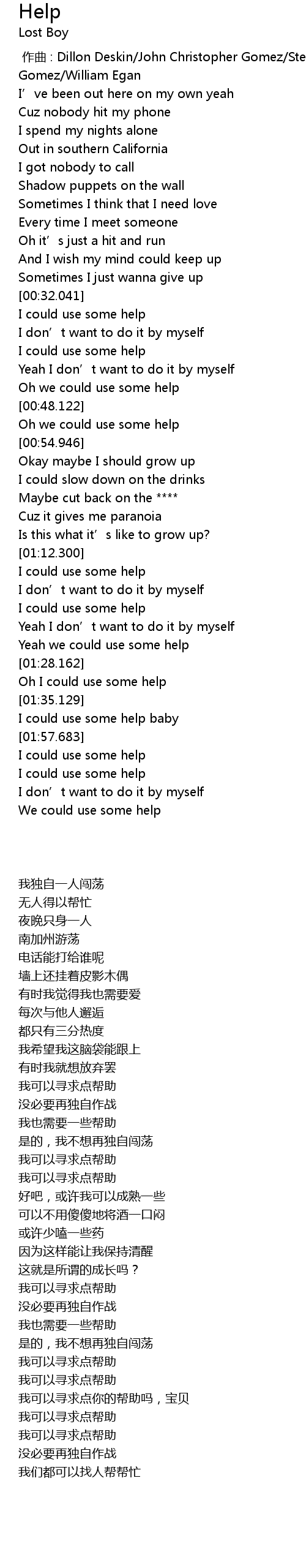 | [00:39.156] | 我也需要一些帮助 |