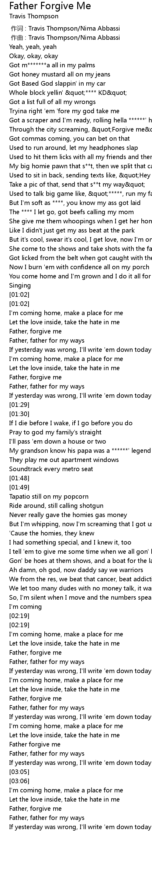 | [00:01.000] | zuo qu : Travis Thompson Nima Abbassi |