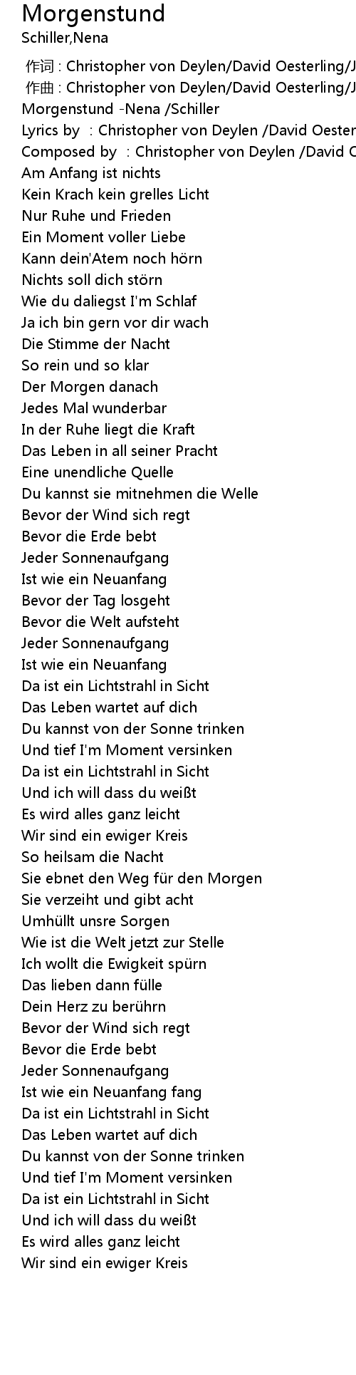 | [00:00.00] | Morgenstund Nena Schiller |