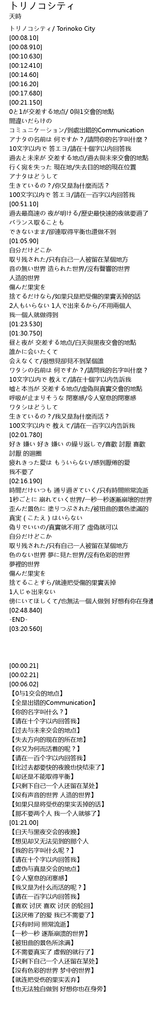 | [02:20.230] | 1秒ごとに 崩れていく世界/一秒一秒逐漸崩壞的世界 |