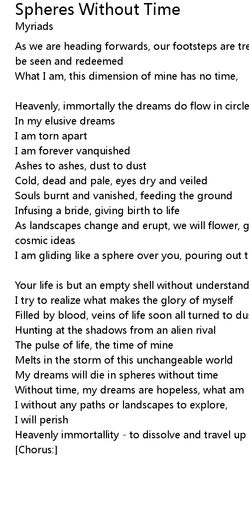 I am gliding like a sphere over you, pouring out the cosmic fantasy, which is eternalized [Chorus:] |