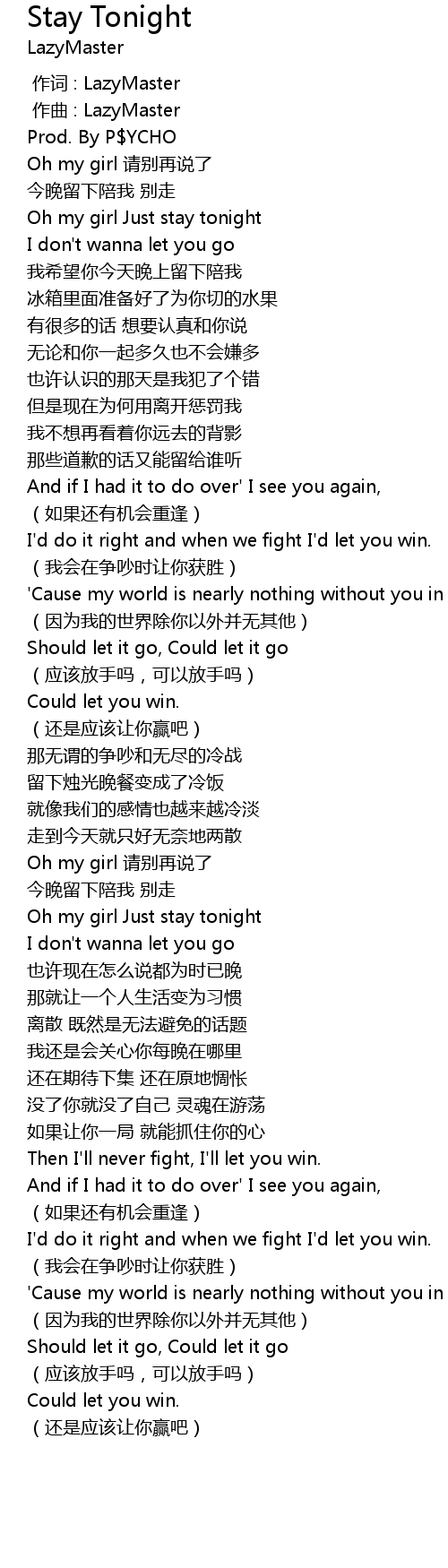| [00:22.518] | jīn wǎn liú xià péi wǒ bié zǒu |