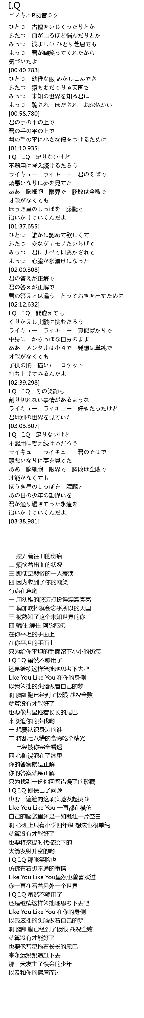 | [03:03.460] | I.Q I.Q 足りないけど |