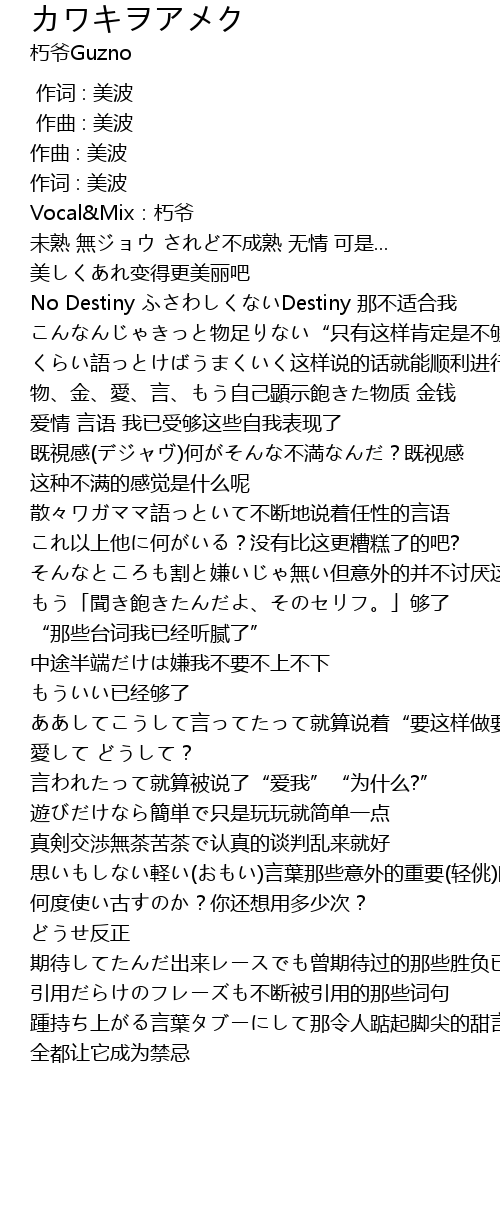 | [00:26.695] | No Destiny ふさわしくないDestiny 那不适合我 |