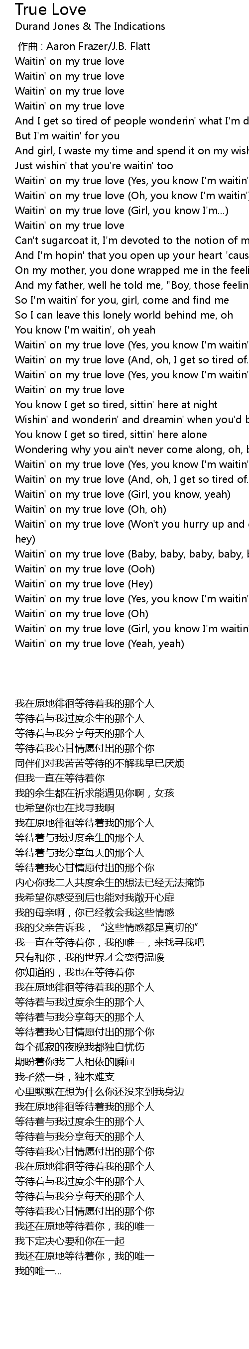 | [01:02.890] | Waitin' on my true love Girl, you know I' m... |