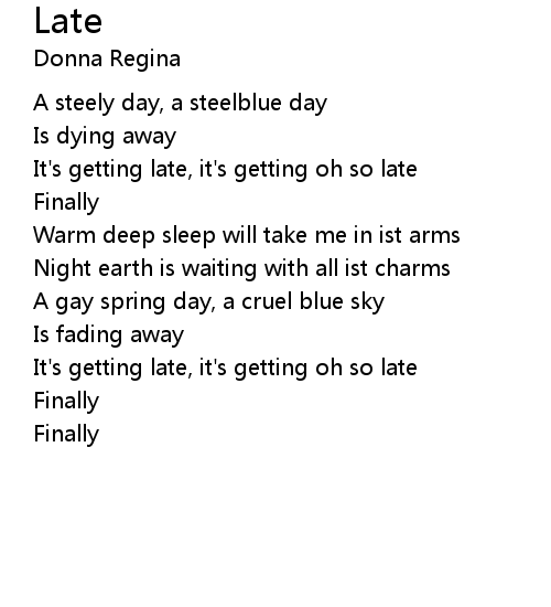 | It's getting late, it's getting oh so late | |
