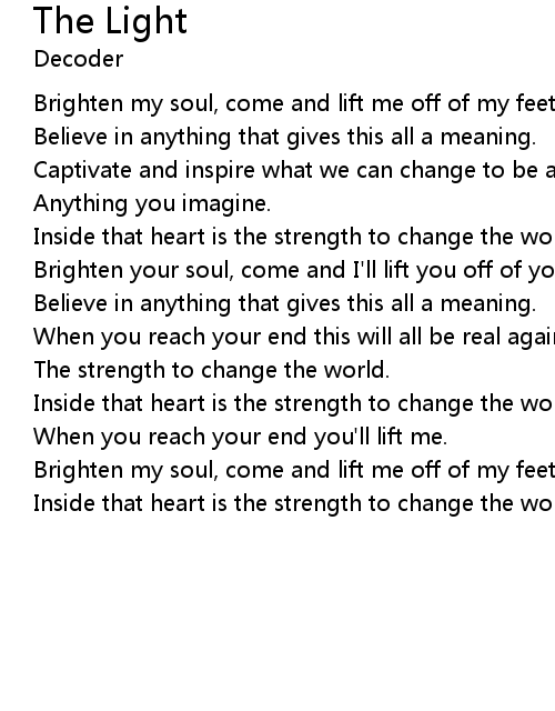 | Brighten your soul, come and I'll lift you off of your feet. | |