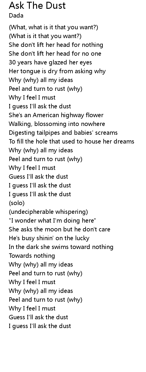 Guess I'll ask the dust |