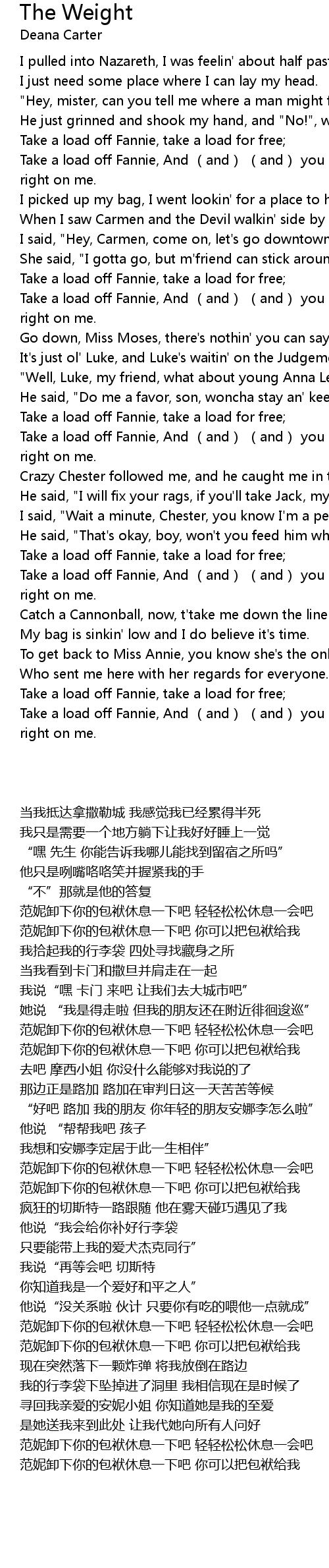 | 歌曲 | The Weight |